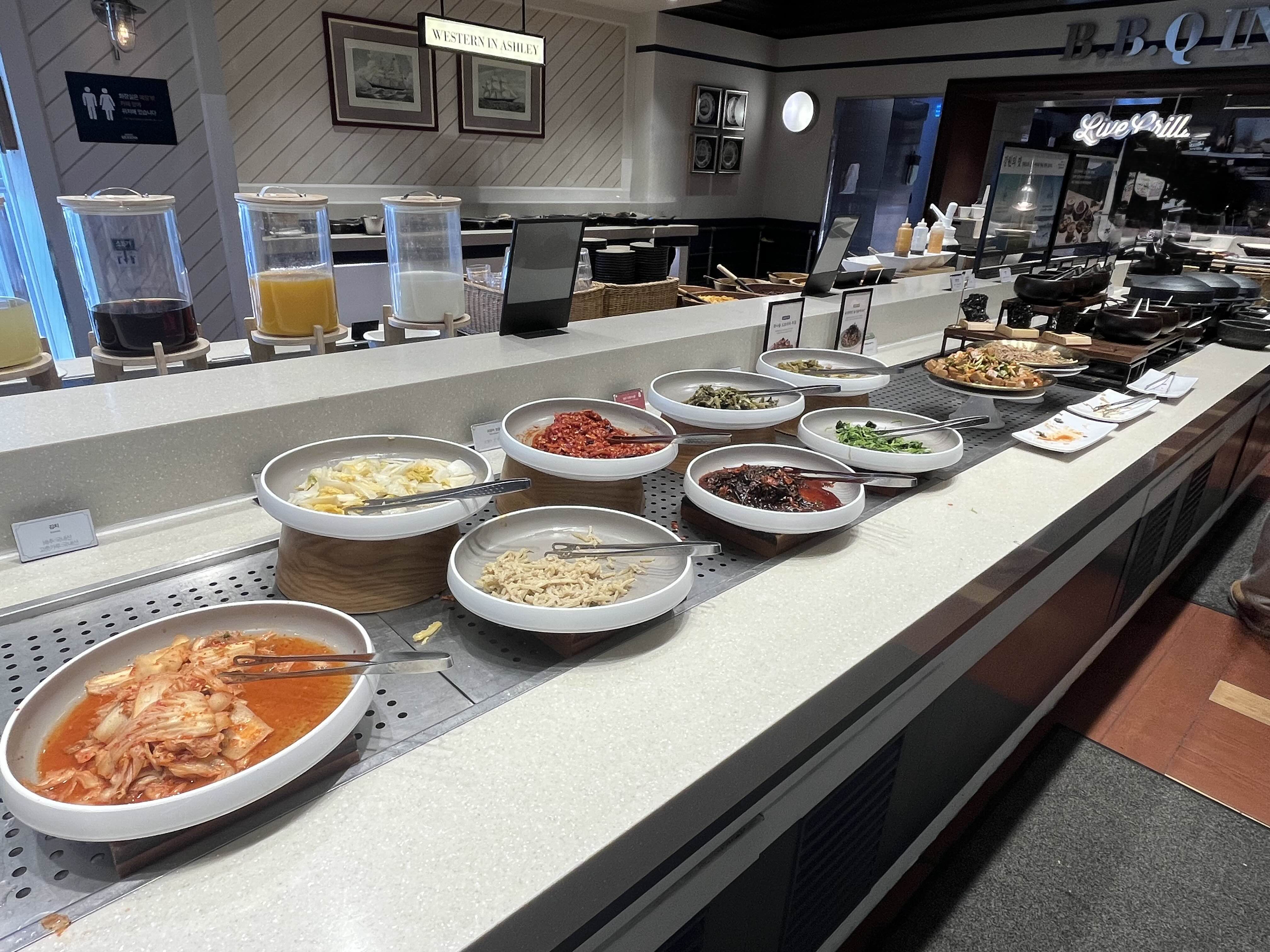 - 다채로운 메뉴: 양식, 한식, 일식 등 기본 라인업이 탄탄합니다. 스크램블 에그나 베이컨 같은 기본 조식 메뉴는 물론, 특히 든든한 한식 반찬들이 많아 남녀노소 호불호가 없겠더라고요. 서양식 조식은 먹다 보면 조금 느끼할 수 있는데, 이곳은 한식 비중이 알차고 메뉴가 다양해서 물리지 않고 먹은 양만 따지면 돈이 아깝지 않았습니다. 맛도 무난해서 아이들도 어른들도 모두 잘 먹었습니다.
