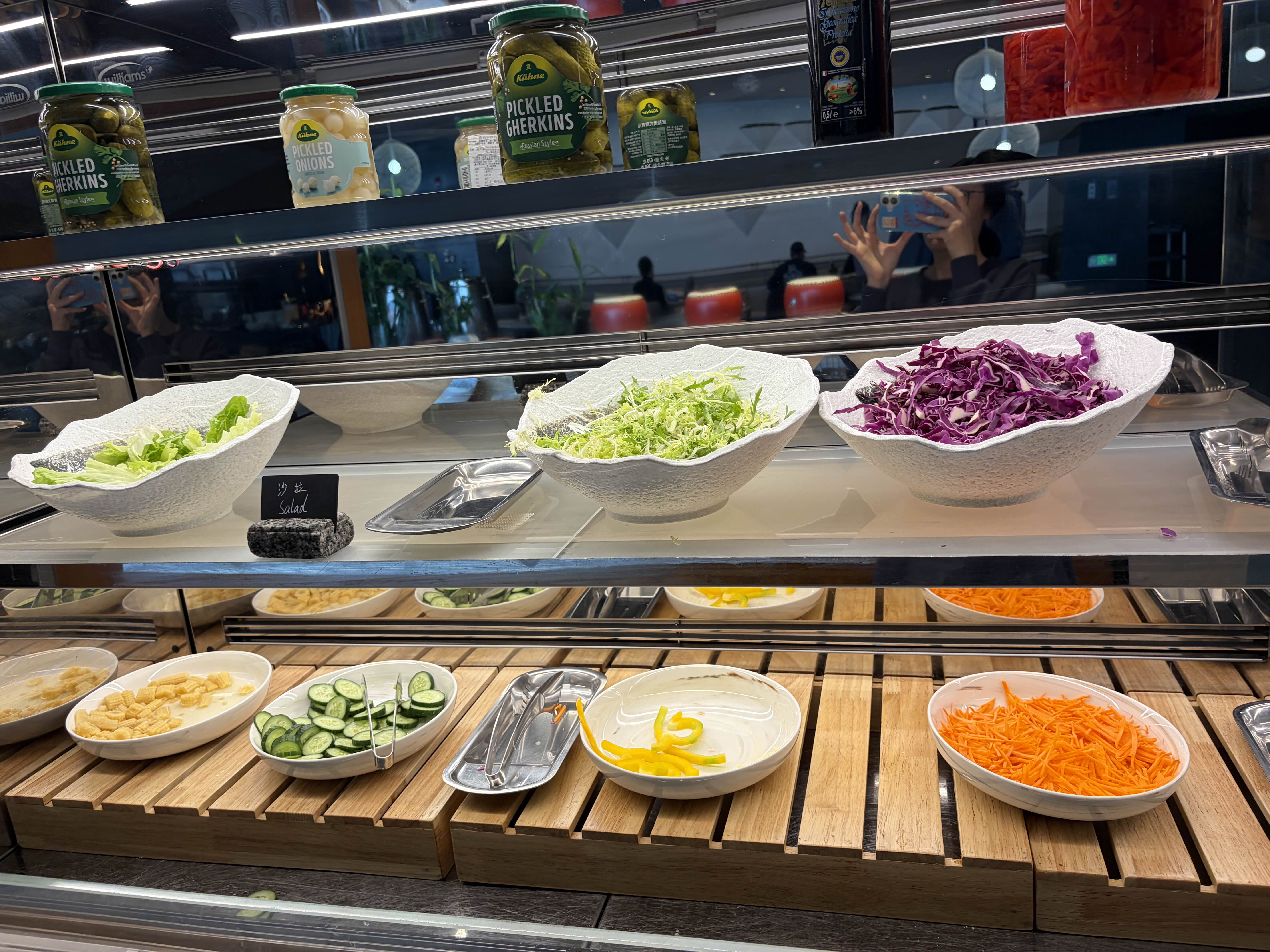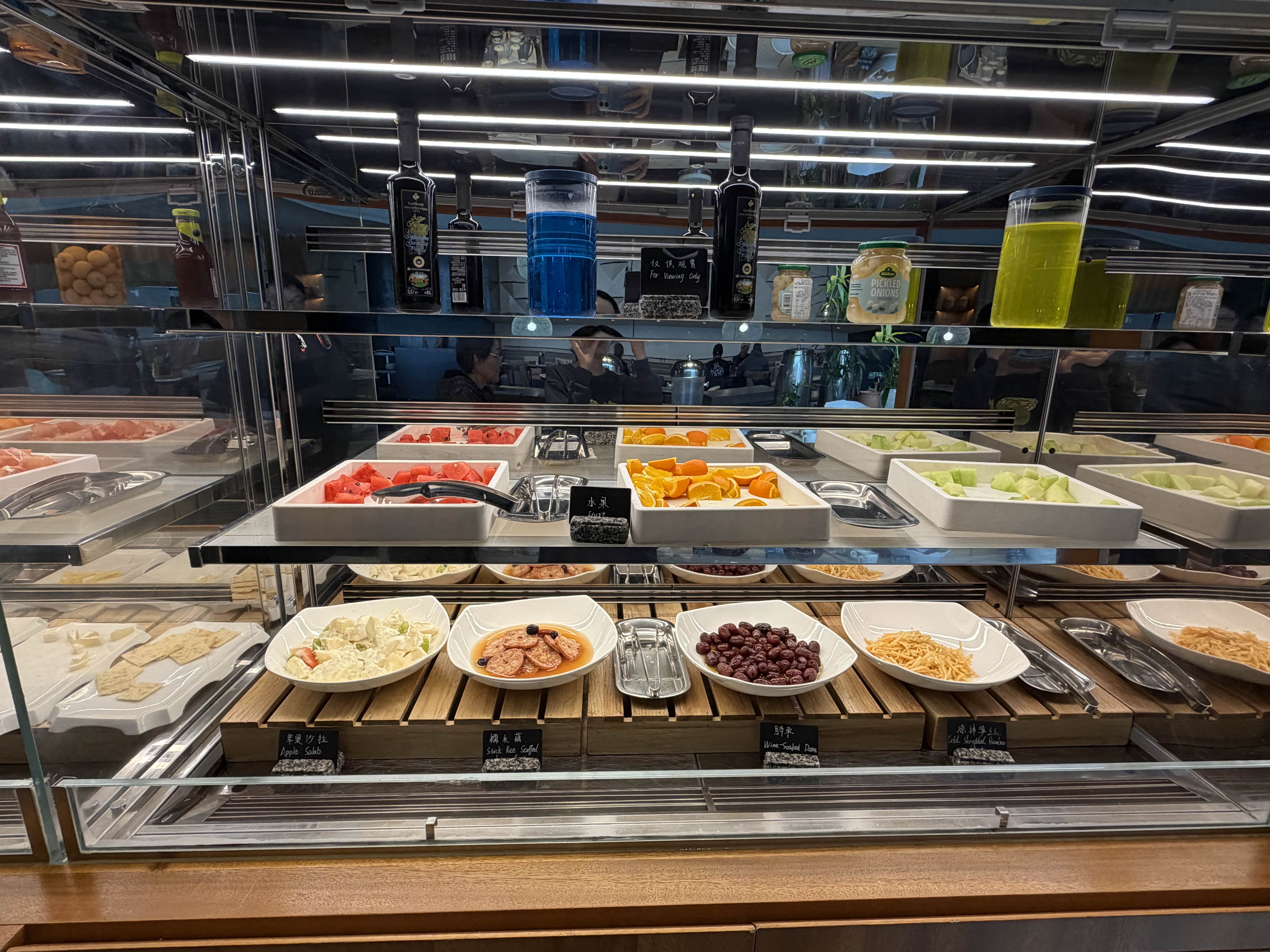 - 하미과는 여기가 1등! : 중국 여행 오면 무조건 먹어야 하는 게 '하미과'잖아요? 연태 쉐라톤이나 메리어트에서도 먹어봤지만, 솔직히 이번 여행 중 하미과는 웨스틴이 최고였어요. 당도가 어찌나 높은지 진짜 달고 맛있어서 계속 가져다 먹었네요. 웨스틴 연태 조식당은 샐러드나 과일, 시리얼 종류가 워낙 다양해서 가볍게 시작하기 너무 좋았습니다.