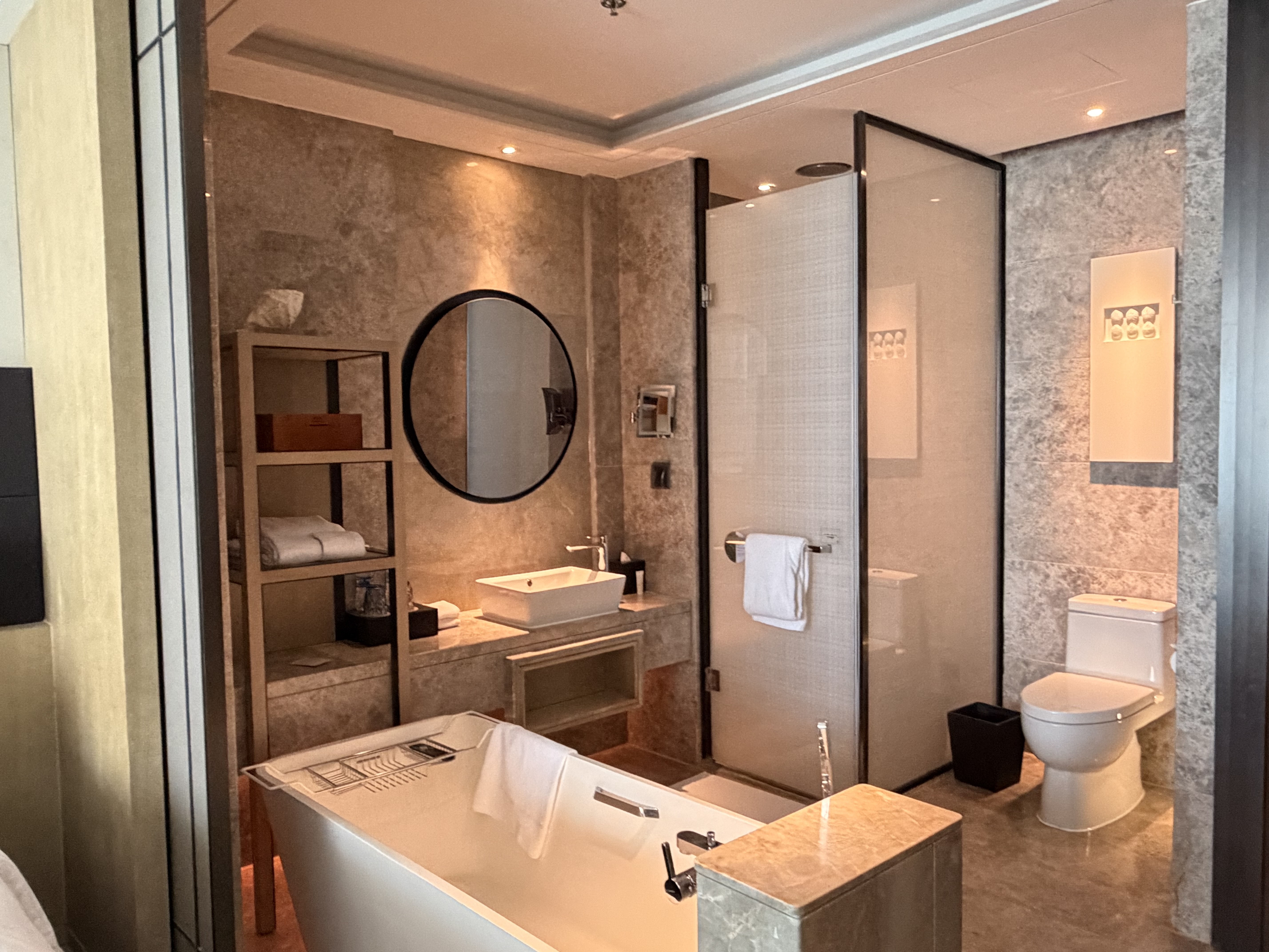 특히 세심하게 준비된 키즈 어메니티나 짐을 넓게 펼쳐두기 좋은 긴 쇼파 등은 가족 단위 투숙객의 편의를 잘 고려했다는 인상을 주기에 충분했어요. 다만, 쉐라톤이나 웨스틴의 부드러운 침구에 익숙하신 분들이라면 메리어트 특유의 바스락거리는 촉감이 조금 낯설게 느껴질 수 있고, 개방형 욕실 구조는 가족 간이라도 프라이버시 면에서 약간의 번거로움이 있을 수 있다는 점은 참고하셔야 할 것 같습니다.